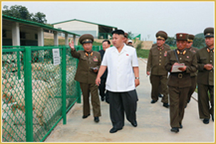 Field Guidance to Completed Breeding Station of KPA ![]() Kim Jong Un, First Secretary of the Workers’ Party of Korea, First Chairman of the National Defence Commission of the DPRK and Supreme Commander of the Korean People’s Army, gave field guidance to the Breeding Station No. 621 of the KPA which was built as a structure to be proud of in the era of the Workers’ Party. ![]() ![]() Watching the stables built in peculiar style in a good place, cozy dwelling houses and flocks of goats and sheep in the pastures, he expressed great satisfaction, saying that they looked like a picture and a tremendous change took place in the remote mountain village and another socialist fairyland appeared there. ![]() ![]() He went round the breeding research center, fields for comparing the species of grass for animals, breeding pens, cultural hall, dwelling houses and other places of the breeding station to learn in detail about its construction, management and operation. ![]() ![]() He said he was pleased to see that a good work was done to round off the cultivation technique on the basis of a scientific calculation of the economic efficiency of various species of grass after creating fields for comparing the species of grass for animals in order to settle the issue of fodder. He praised the station for meticulously conducing the work to massively increase the number of goats of good stock provided by the party for supplying them to other units and the work for rounding off the method of raising grass-eating animals. He called on the station to play the role as a center and base in rounding off and widely introducing the method of raising grass-eating animals of good stock and gave important instructions to do so. He met the family of Paek Song Jin and Yun Song Hui who moved to a new house that day and had a photo taken with them. ![]() ![]() He repeatedly expressed his satisfaction, saying the longer he watched the station, the more spectacular it looked and wherever he went, everything was impeccable. He sent thanks to the soldier-builders in the name of the KPA supreme commander. “Going round this station, I felt my heart aching at the thought of Chairman Kim Jong Il who worked heart and soul to solve the food problem of the people all his life”, Kim Jong Un said with deep emotion, adding how nice it would have been, if this splendid station had been shown to Kim Jong Il already. He expressed expectation and belief that the officials and employees of the station would put into practice the intention of the party by breeding more grass-eating animals, always bearing in mind the love for the people shown by President Kim Il Sung and Kim Jong Il.